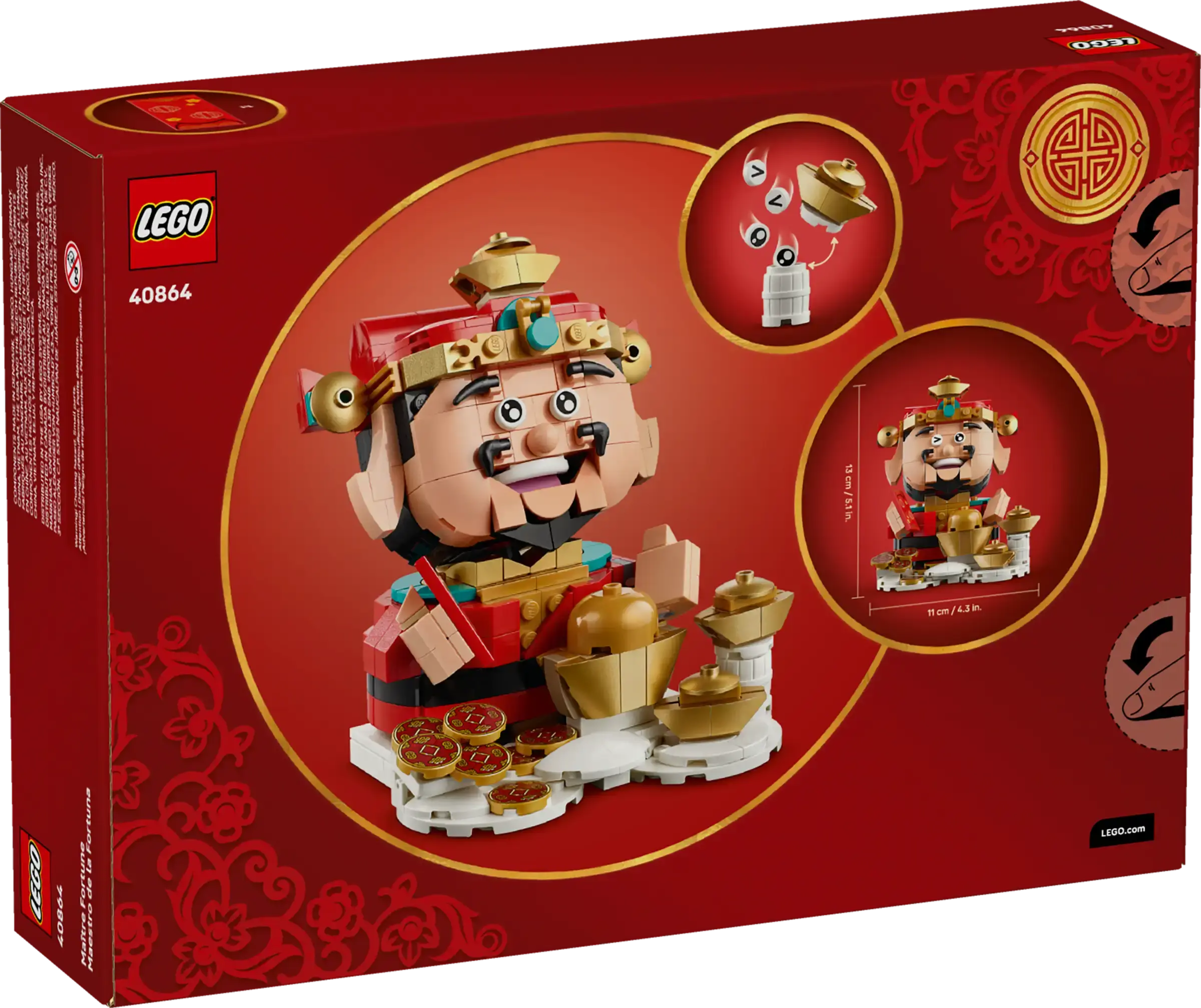 Spread wishes of good fortune with the LEGO® Fortune Master (40864) building set for boys and girls ages 9 and up, which becomes awesome seasonal decor. Kids will have lots of fun building this LEGO interpretation of the Fortune Master and discovering all its cool details. The collectible model is dressed in traditional red and gold clothing and features 3 sets of eyes to allow for customization, plus a hidden compartment for storing the spare eyes. It’s also surrounded by symbols of good luck for kids to discover, including gold coins and red envelopes. Once complete, the set becomes a display model that can be admired all year long or brought out as Spring Festival decor every year. A thoughtful Spring Festival or good luck gift, kids can enjoy this building kit as a solo project or share it with family to bond over bricks and celebrate an important festival together. Set contains 386 pieces.