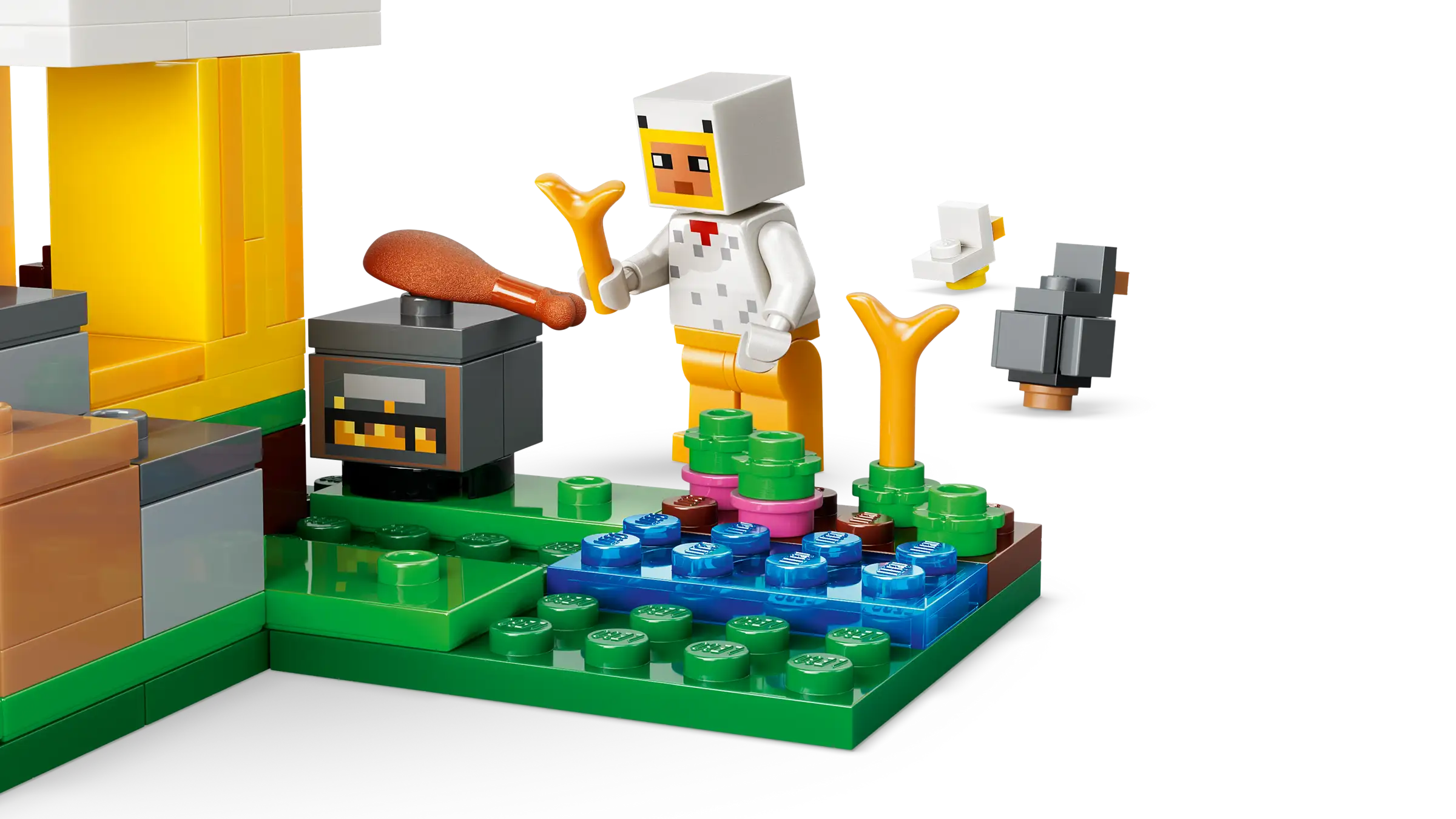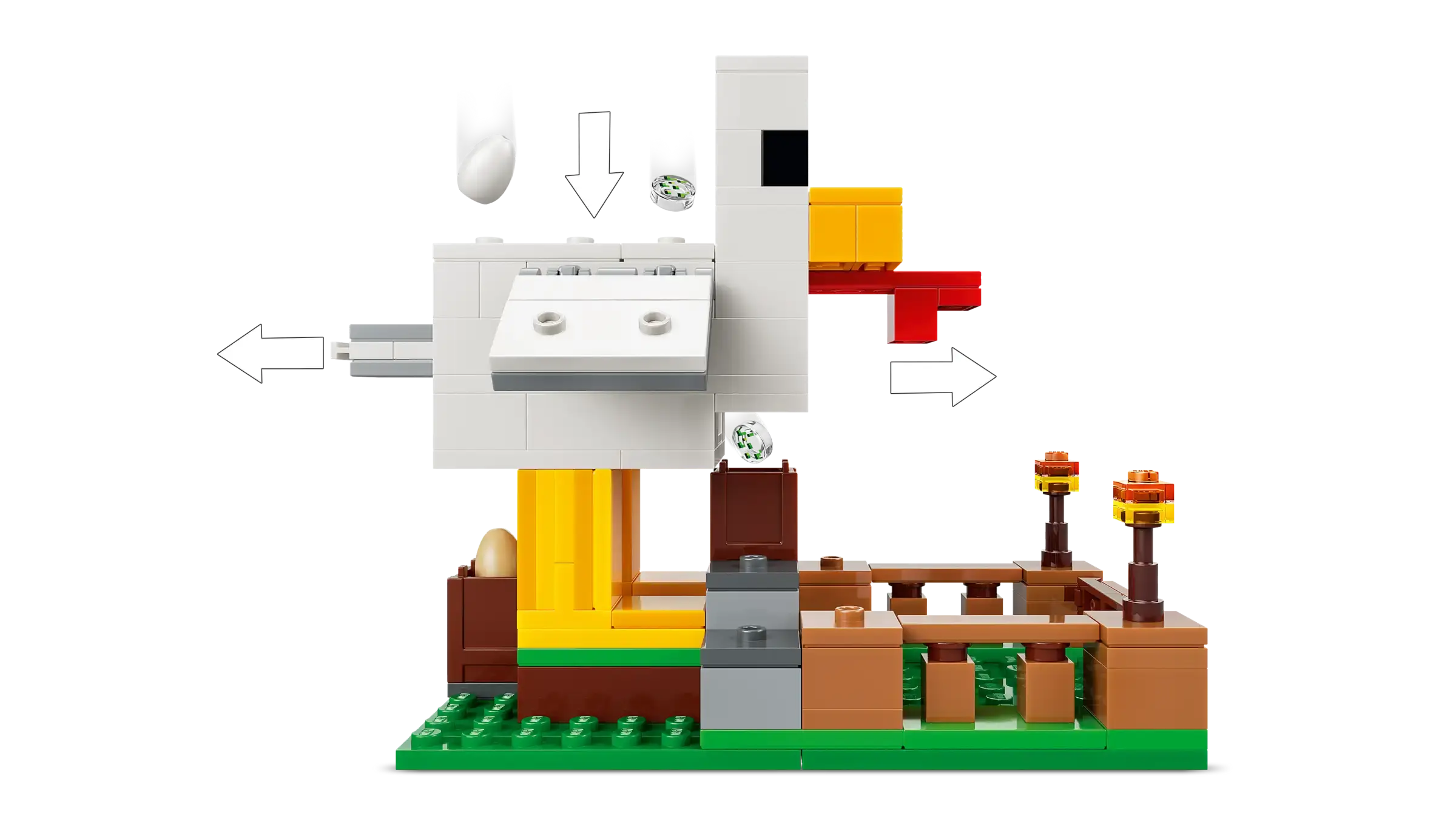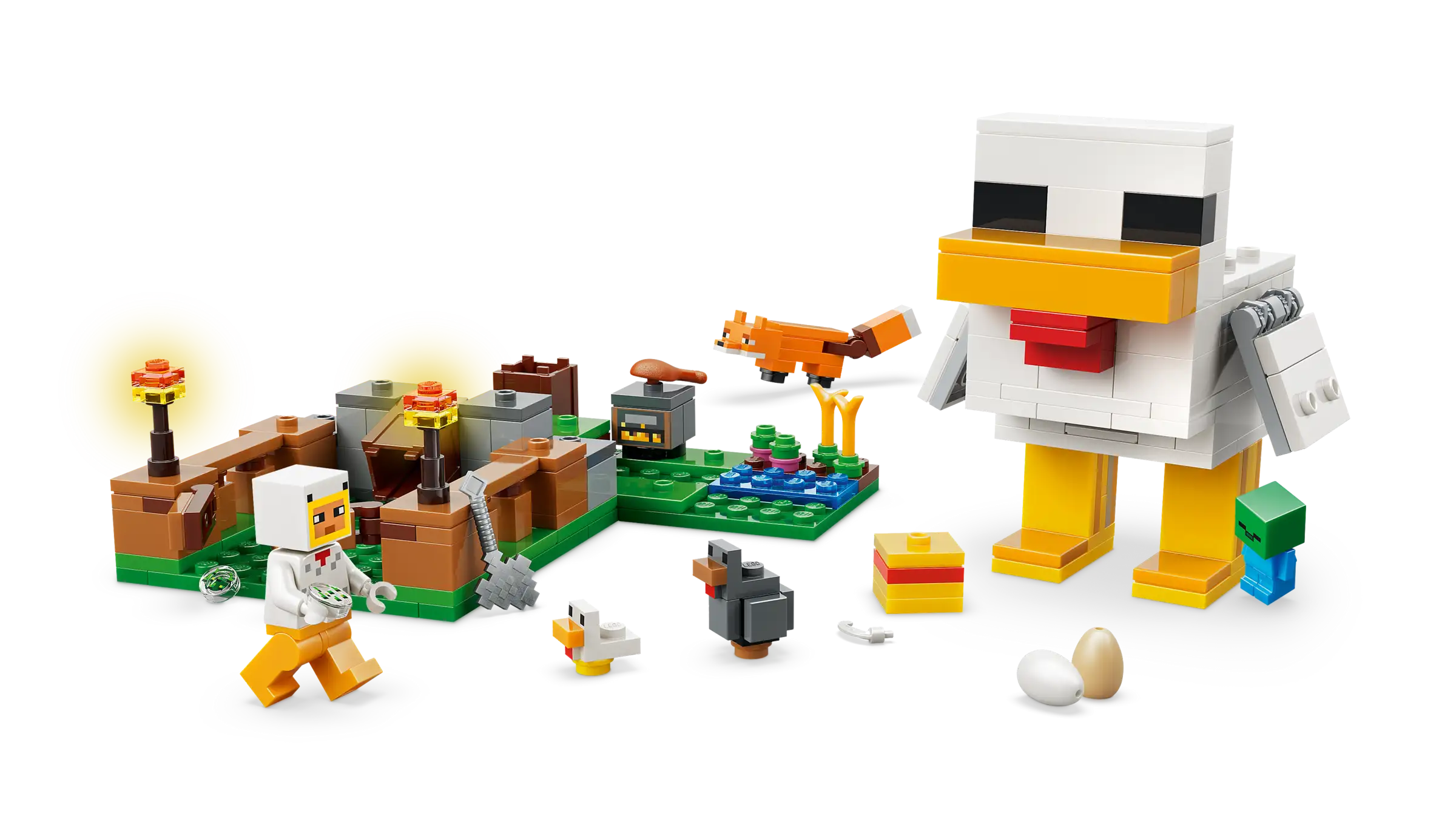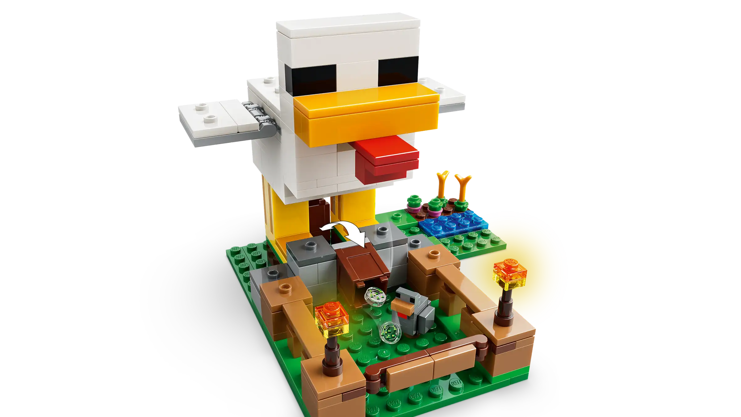 Care for chickens and grow crops with the LEGO® Minecraft® Chicken Farm (21585) gamer toy for girls and boys 7 years old and up. This kids’ gaming building set challenges players to look after a cold chicken and a baby chicken with a Chicken Fan minifigure, while dealing with a fox (who likes to eat cold chicken) and a baby zombie (who likes to ride chickens). The pretend play chicken coop is shaped like a chicken with movable wings and a pen at the front with an opening gate. The giant chicken lays eggs at the rear and dispenses seed from its mouth into a container, which tilts forwards when the chickens need food. Fun accessories include torches, hay, a smoker stove, 2 eggs, 2 lots of seeds, a chicken leg, feather and an axe. This is agreat gift idea for Minecraft players, LEGO builders and fans of gaming decor sets and comes with the LEGO Builder app, which lets kids zoom, rotate in 3D and track progress with easy-to-follow digital instructions. Set contains 233 pieces.
