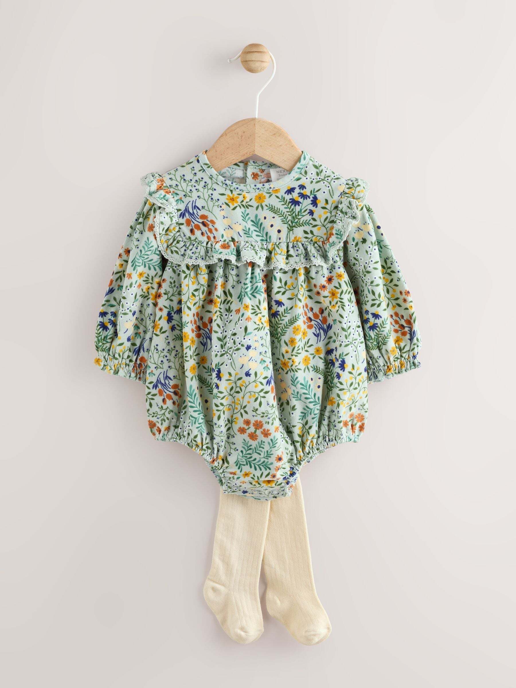 Платье-песочник и колготки в комплекте для девочки Next AN7-953, Зеленый